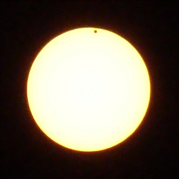 June 5, 2012: Venus Transit from Depoe Bay Just as we thought that the clouds were here to stay, the sun came out just and Venus started its transit! So I quicklly set up my Sony Cybershot DSC H7 and started snapping photos. At this point I had the Orion ED80T CF Triplet Apochromatic Refractor Telescope and a Canon EOS 30D SLR Camera. But I still had not mastered how to capture photos with this equiipment. So I decided to fall back to using my old reliable Sony Cybershot. I had set up my equipment on the back deck of our house in Depoe Bay. Click on the photo below to see a movie of the snapshots that I took. Note that I had forgotten to adjust the exposure correctly on the first few snapshots, so please bear with me, a complete novice in astrophotography!